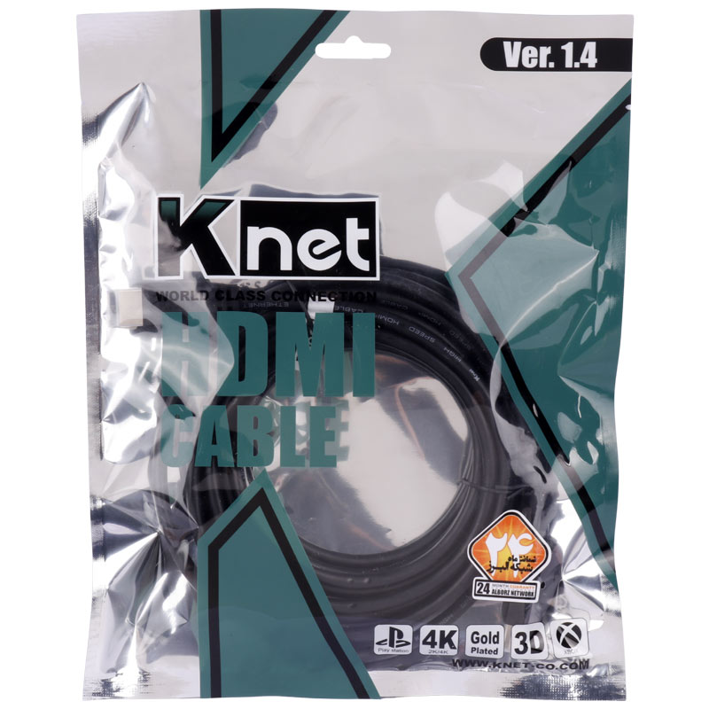 درگذشته انتقال تصویر و صدا توسط چندین کابل بهصورت جداگانه صورت میگرفت. یعنی اگر میخواستیم از دستگاه دی وی دی یا دوربین فیلمبرداری فیلمی را از تلویزیون ببینیم، میبایست از چندین کابل برای انتقال تصویر و صدا استفاده کنیم. کابل HDMI کار را آسان کرده است. میتوان تنها با یک کابل HDMI ، تصویر و صدا را به بهترین شکل منتقل کرد. کابل HDMI مخفف High Definition Multimedia Interface است و برای انتقال همزمان تصویر و صدا به صورت دیجیتال به کار می رود. زمانی می توانید از این کابل استفاده کنید که هر دو دستگاه الکترونیکی مبدا و مقصد مجهز به درگاه HDMI باشند. در واقع این کابل جایگزینی برای کابل های (AV) با سه سیم جداگانه است. کابل HDMI کی نت با روکشی از جنس PVC و کانکتور فلزی از جنس آلیاژ طلا می باشد. این کابل دارای دو لایه می باشد محافظ می باشد که لایه اول شیلد محافظ بیرونی است که از پلاستیک مرغوبی ساخته شده است تا در برابر ضربه ، خمیدگی و کشیدگی مقاومت بیشتری داشته باشد. در داخل کابل نیز لایه دومی وجود دارد که از جنس نوعی فویل خاص می باشد تا مقاومت و کیفیت کابل را بیش از پیش افزایش دهد.