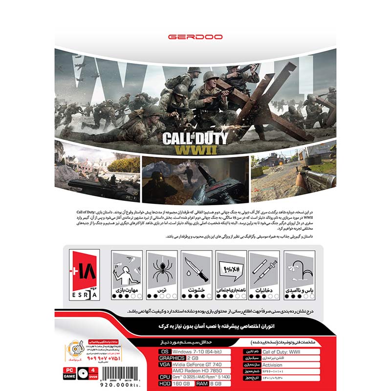 با "Call of Duty WW2" به قلب تاریخ جنگ جهانی دوم برگردید و تجربهای هیجانانگیز و واقعی از نبردهای نفسگیر را تجربه کنید! گرافیک بینظیر، داستان جذاب و گیمپلی استثنایی، هر صحنه را به یک ماجراجویی بیپایان تبدیل میکند. این بازی را از دست ندهید و قهرمان جنگ خود شوید!