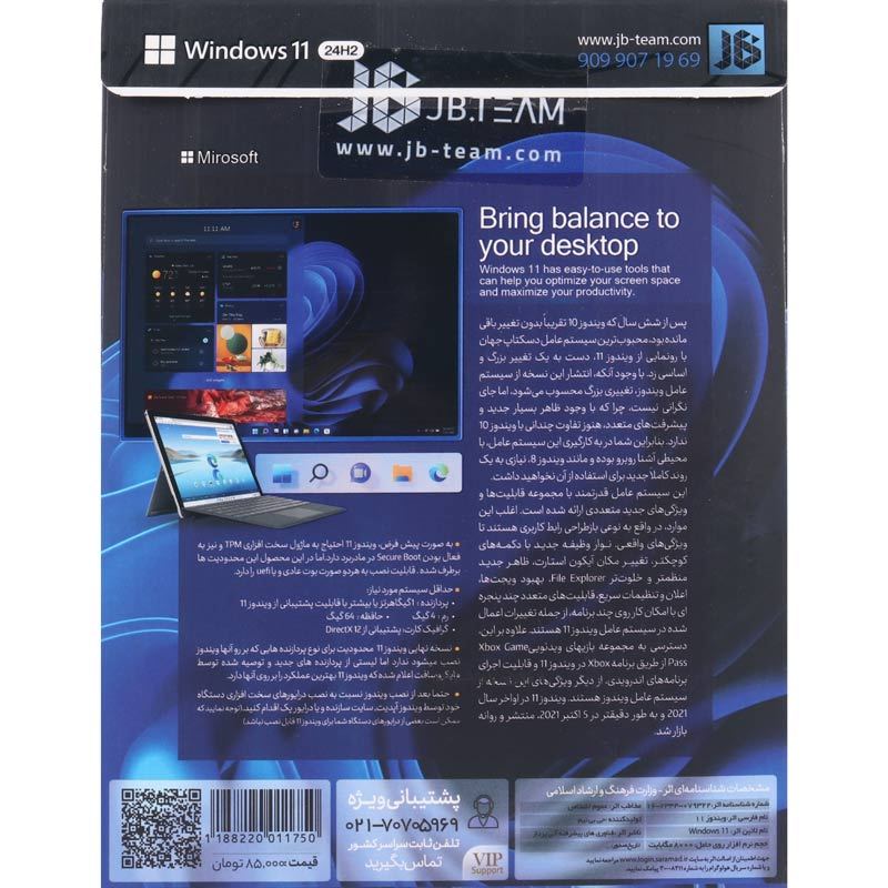 با جدیدترین نسخه Windows 11 UEFI، سرعت و کارایی سیستمتان را به اوج برسانید! این نسخه شامل Home، Pro و Enterprise در یک DVD9 توسط JB.Team ارائه شده است. با رابط کاربری جذاب و امکانات پیشرفته، تجربهای بینظیر از جدیدترین تکنولوژیها داشته باشید. فرصت را از دست ندهید و همین حالا اقدام کنید!